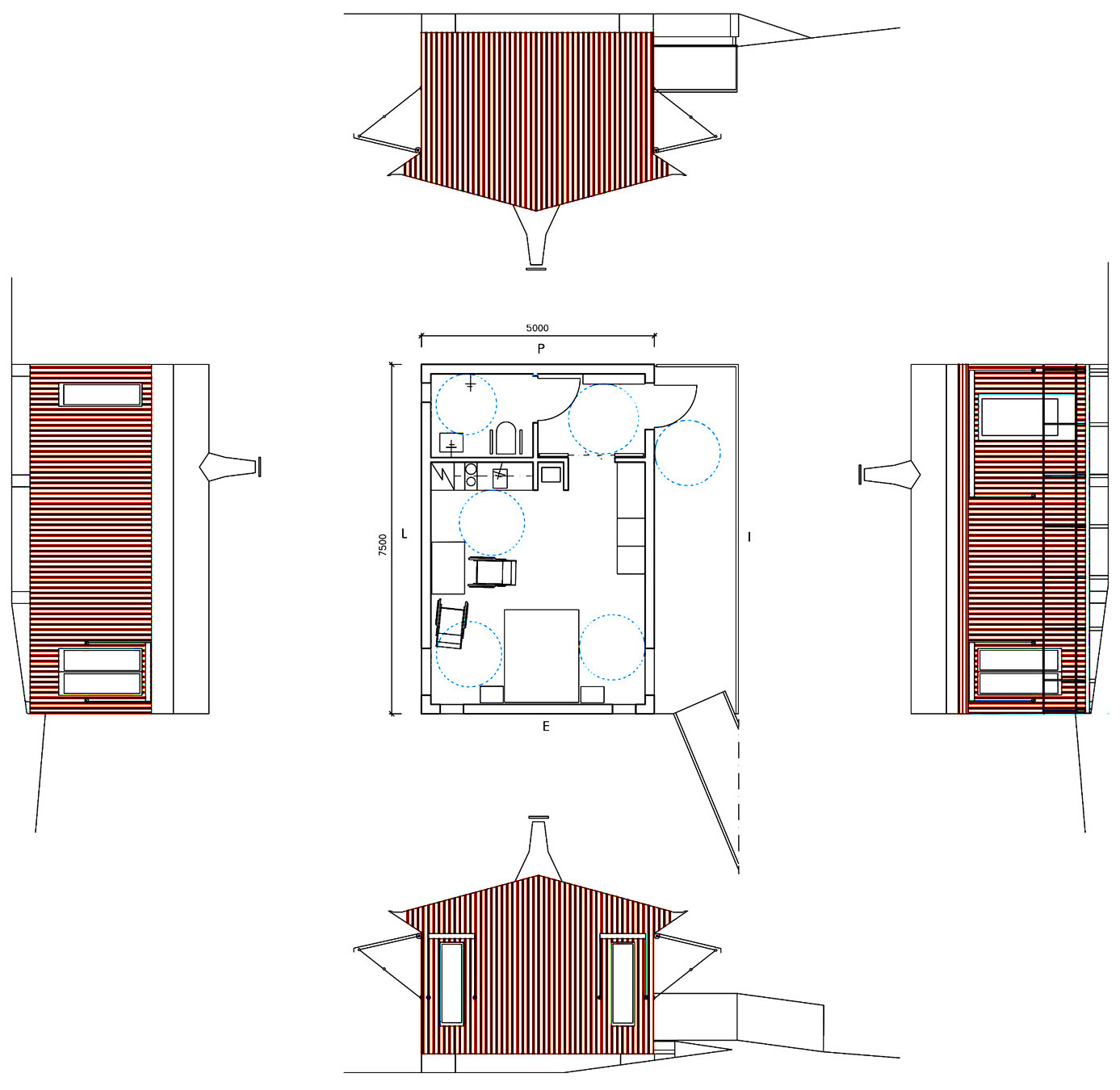 The grandparent’s cottage is a home for a single elderly person or a compliant couple. There are two versions of the cottage: a low version suitable as a yard building in a low-rise housing area, and a tall version with an attic space or the option of building a barrel-vaulted ceiling. The cottage comprises such a small living space that the resident will require use of the communal areas in the block. The cottage is a CLT-construction and dimensioned for dismantling and reassembly.