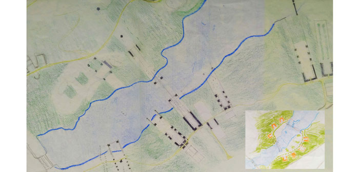 Leisure buildings, ski slopes and beaches on both sides of the channel are connected by water.